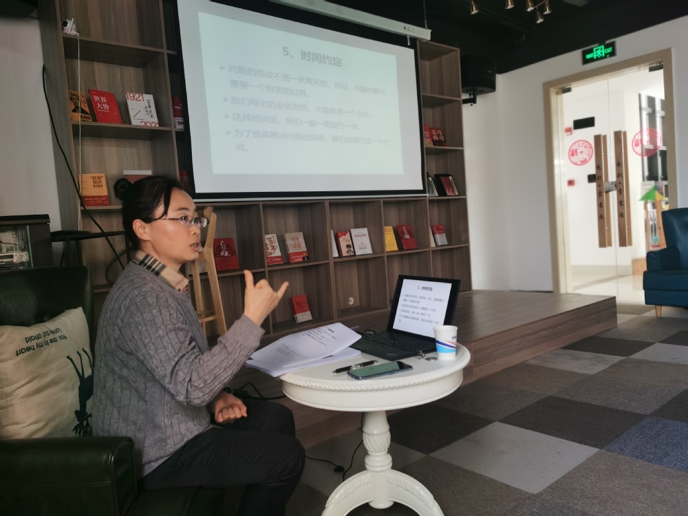 在互动交流环节,辅导员老师结合自身工作对生涯咨询中遇到的问题进行了沟通交流,在闫咏老师的引领下,通过研讨方式寻找问题最优解。