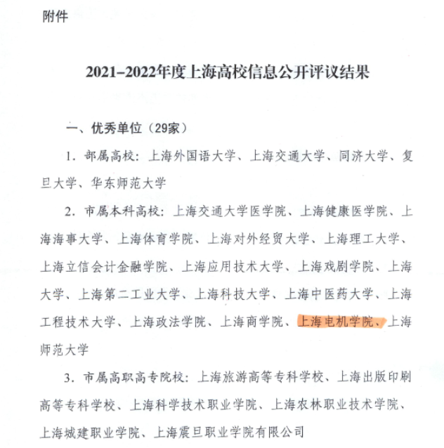 近日,上海市教育委员会公布了2021-2022年度上海高校信息公开评议工作结果(沪教委办〔2023〕7号),我校获评上海高校信息公开工作优秀单位。这是学校继上年度首次获评优秀单位后再度获此荣誉。