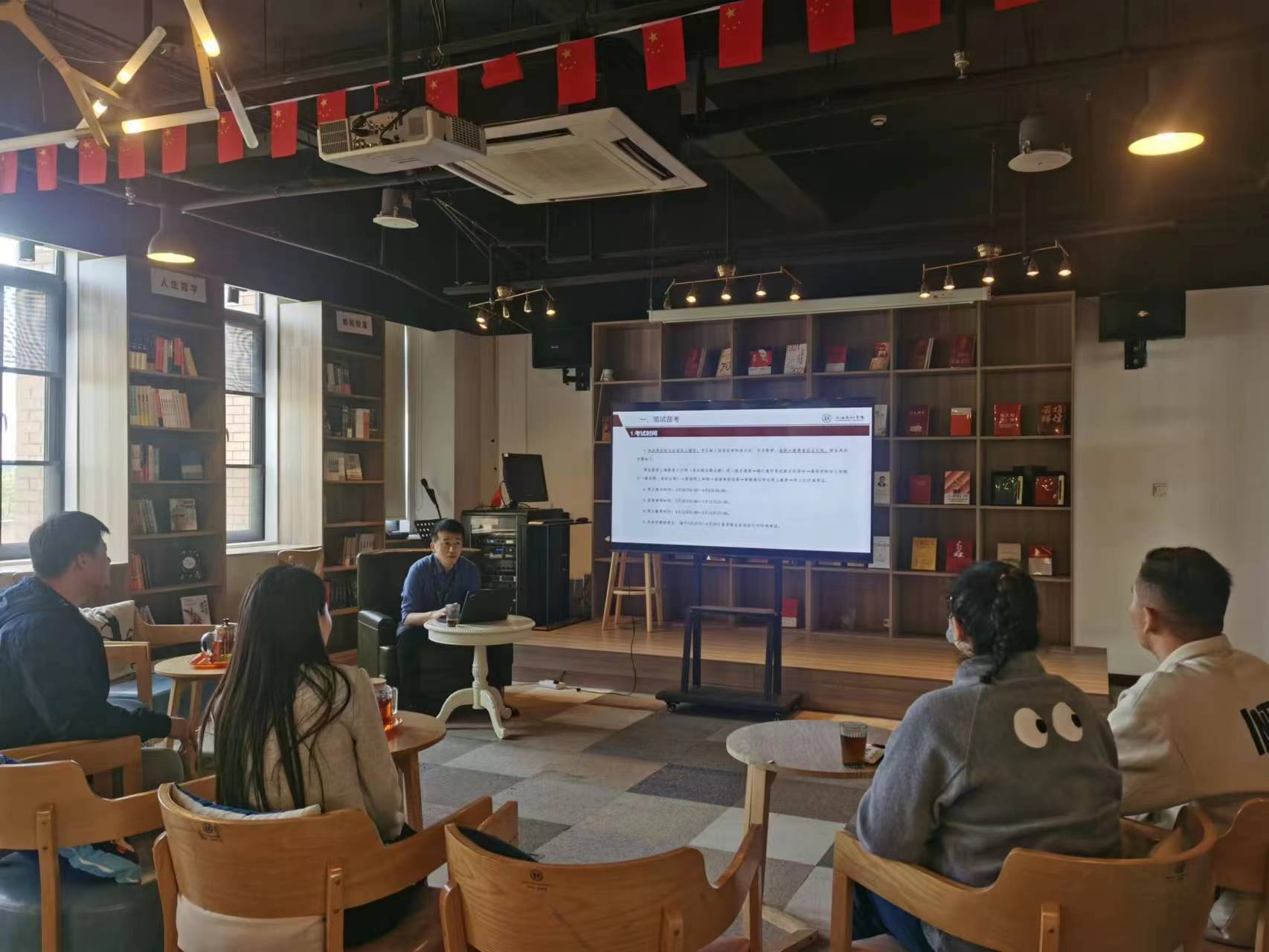设计与艺术学院张强老师将自己前期准备的各类复习资料倾囊相授,黄珏老师结合自身考试经历从笔试复习技巧方面与在场老师们进行深入交流。高职学院彭麟老师和外国语学院钱昆鹏老师从面试备考出发,对教案撰写、试讲流程、结构化答题等三方面进行重点讲解。