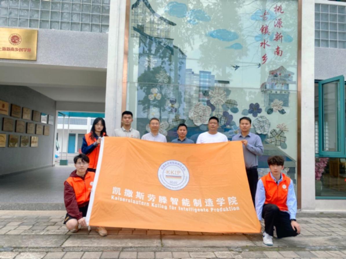 5月4日下午,上海电机学院凯撒斯劳滕智能制造学院与浦东新区新场镇新南村村委会、上海新场乡创实业发展有限公司在新南村举行团建共建签约揭牌仪式。学院副书记、副院长苏庆刚、组织员李玲、团总支书记滕宇和学生代表与上海新场乡创实业发展有限公司党支部书记瞿学军、党总支委员唐玲、副总经理徐超、新场镇新南村党总支副书记曹保军共同出席。本次活动作为学院“行走的力量”党建带动团建系列活动的开始,致力于通过走进乡村、知行合一的特殊形式献礼五四青年节,五育并举开展学生综合素质培养。