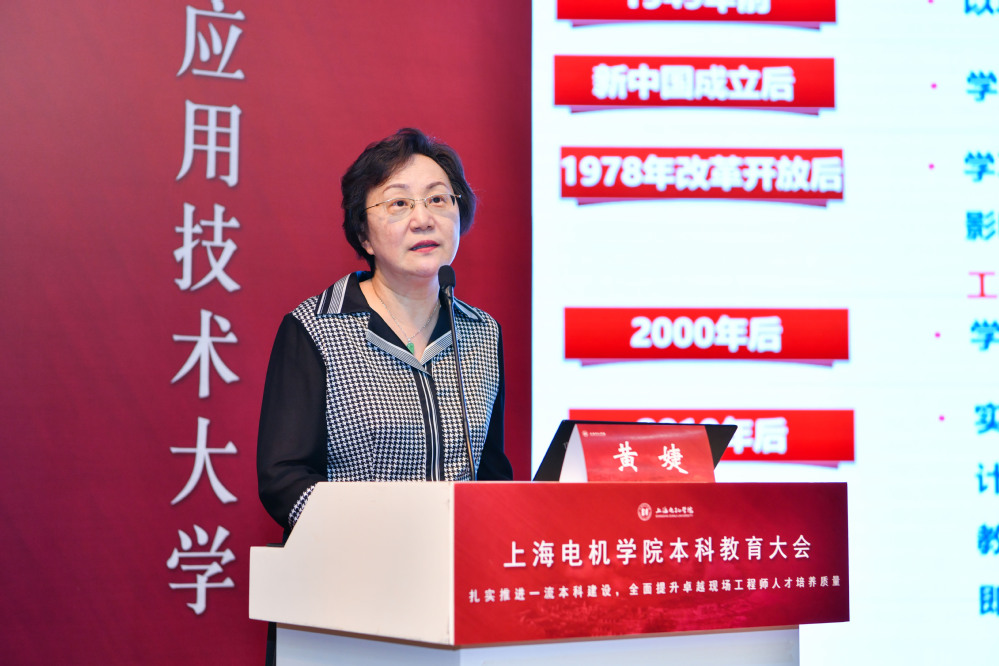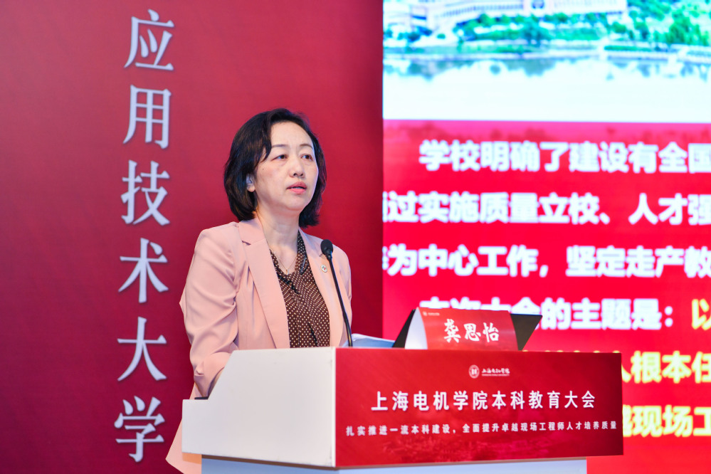 龚思怡院长作题为《全面落实立德树人根本任务,培养新时代卓越现场工程师》的主题报告。她回顾了学校七十年人才培养历程,指出学校面向国家、上海市及临港新片区行业企业需求,培养了大批活跃在生产、管理、服务一线的高素质应用技术人才,铸就了“现场工程师成长摇篮”。在新的发展阶段,学校结合党中央和国家对培养战略人才的要求以及上海电机学院的办学实际,将本科人才培养定位从“现场工程师”调整为“卓越现场工程师”。在此基础上,学校将构建“1164”卓越现场工程师培养体系,贯彻OBE教育理念,走实产教融合特色发展路径,实施六大人才培养改革计划,落实四大保障措施,全面提升应用型人才培养质量,努力为上海及临港新片区产业发展培养更多更优的卓越现场工程师。