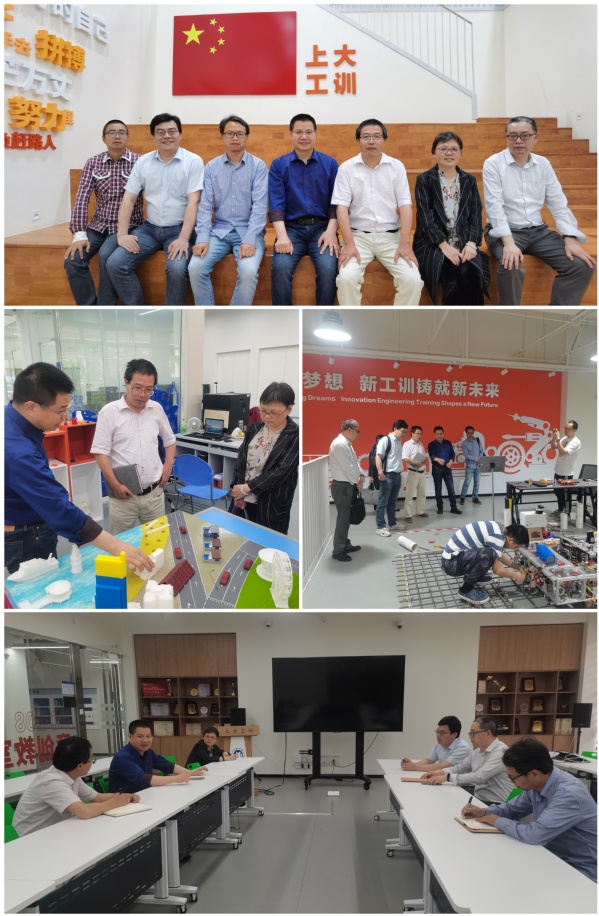 上海大学工程训练中心党支部书记、主任郭帅陪同本次调研的同志参观了工程训练中心焊接实训室、激光实训室、3D打印实训室、电火花实训室、木艺实训室、铸造/陶艺实训室以及竞创和研创室等,并就全新的“大”工程发展理念取得成效及未来发展等进行了详细介绍。双方通过座谈会的形式从中心党组织建设、实践教学课程体系建设与改革、师资管理考核、公共服务平台规划建设及运行管理机制等多方面进行了深入地讨论交流。