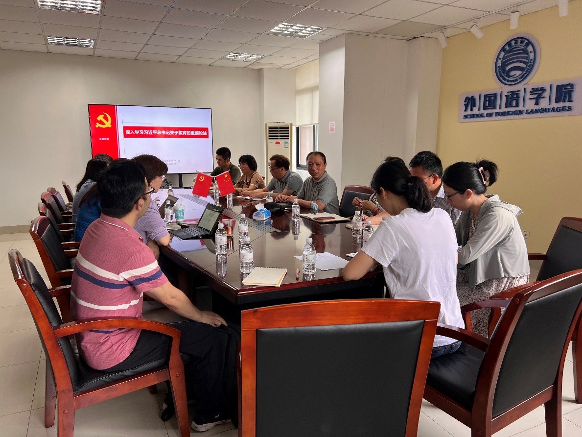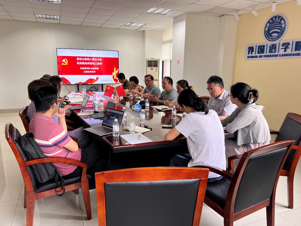 为深入开展学习贯彻习近平新时代中国特色社会主义思想主题教育,外国语学院党总支与机械学院党总支于6月27日上午开展了主题教育联组学习:坚定立德树人根本任务,高质量培养卓越现场工程师。学习由机械学院党总支书记卞一明主持,外国语学院、机械学院党总支委员和中层干部参加。