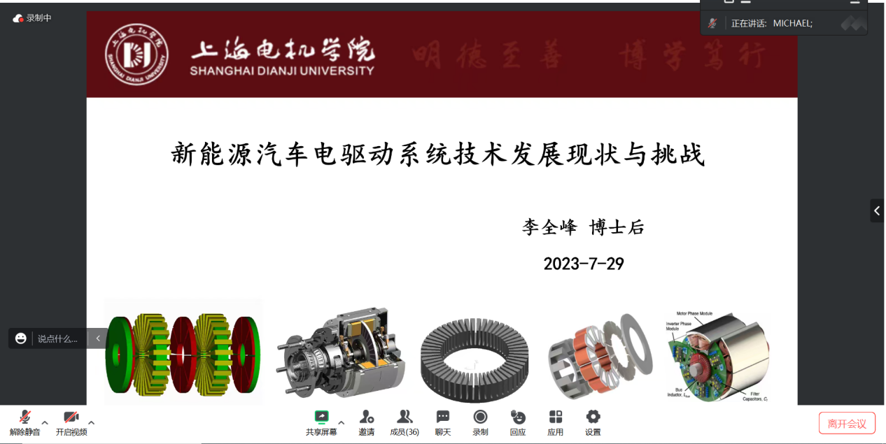 在“学科大咖云讲座”环节,三位电气学院的研究生导师为营员们带来了精彩纷呈的专题讲座。张延迟教授作了题为“新能源发电并网控制与检测”的学术报告,重点阐述了国内新能源领域的发展现状、风光火多源并网场景下复杂振荡的机理研究等内容,还介绍了该课题组的研究生培养概况。多年来,该课题组的研究生在学科竞赛和科技成果转化等方面取得了优异成果。李保江老师介绍了智能决策与控制技术研究所概况,该团队定位于机器人智能决策与控制领域,主要研究多源生物信号控制技术,多模态信息融合的脑机接口等技术,报告还介绍了该团队的研究生培养情况,特别是在2023年已发表录用SCI一区论文1篇,二区TOP论文多篇。李全峰老师以评论区互动的方式,别开生面地展开了题为“新能源汽车电驱动系统技术发展现状与挑战”的学术讲座,部分营员在交流环节兴奋表示将来要致力于新能源汽车驱动技术研究。