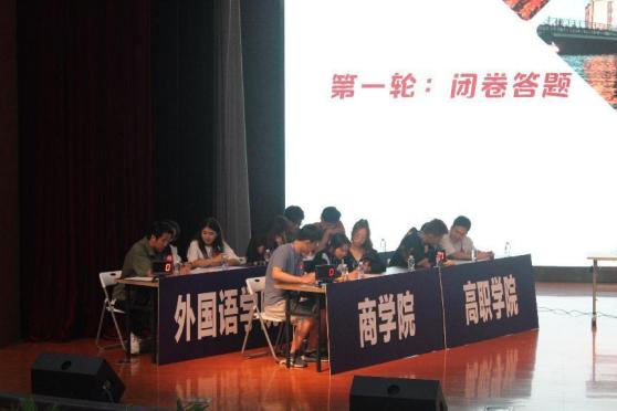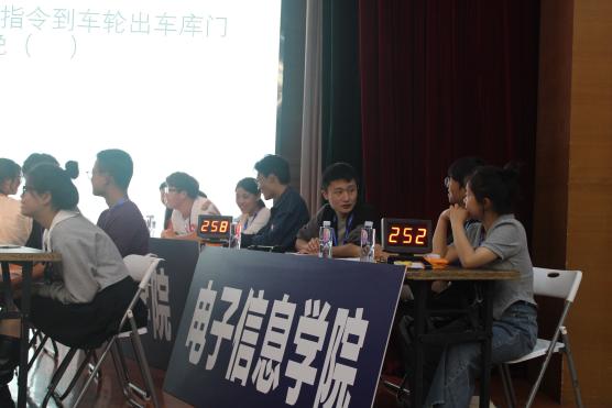主持人在赛前介绍了比赛规则,本次比赛分为闭卷笔试题,必答题,抢答题,论述题,4轮总分最多的为一等奖,以此类推,获胜的队伍将代表上海电机学院参加上海市复赛比赛。