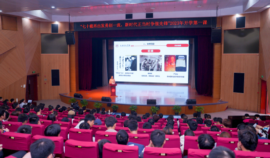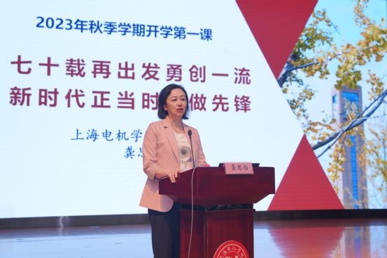 10月27日下午,面向本专科新生的2023年“开学第一课”在我校临港校区小剧场举行。院长龚思怡以“七十载再出发勇创一流 新时代正当时争做先锋”为题进行讲授,500余名师生近距离聆听了此次立意深远、内涵丰富的思政大课。