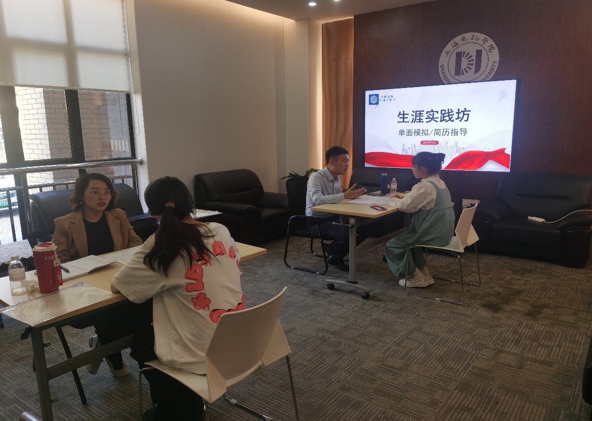 10月中旬,生涯工作室外企求职线下生涯实践坊顺利开展。线下部分分别从简历/单面一对一指导和企业群面模拟演练两部分进行现场强化训练。通过一对一现场单面模拟及简历指导,企业导师结合学生的目标岗位从简历的规范性、针对性,现场面试的情绪稳定性、表达有效性、回答逻辑性和针对性、前期准备的时效性等,针对不同学生模拟表现进行不同指导。