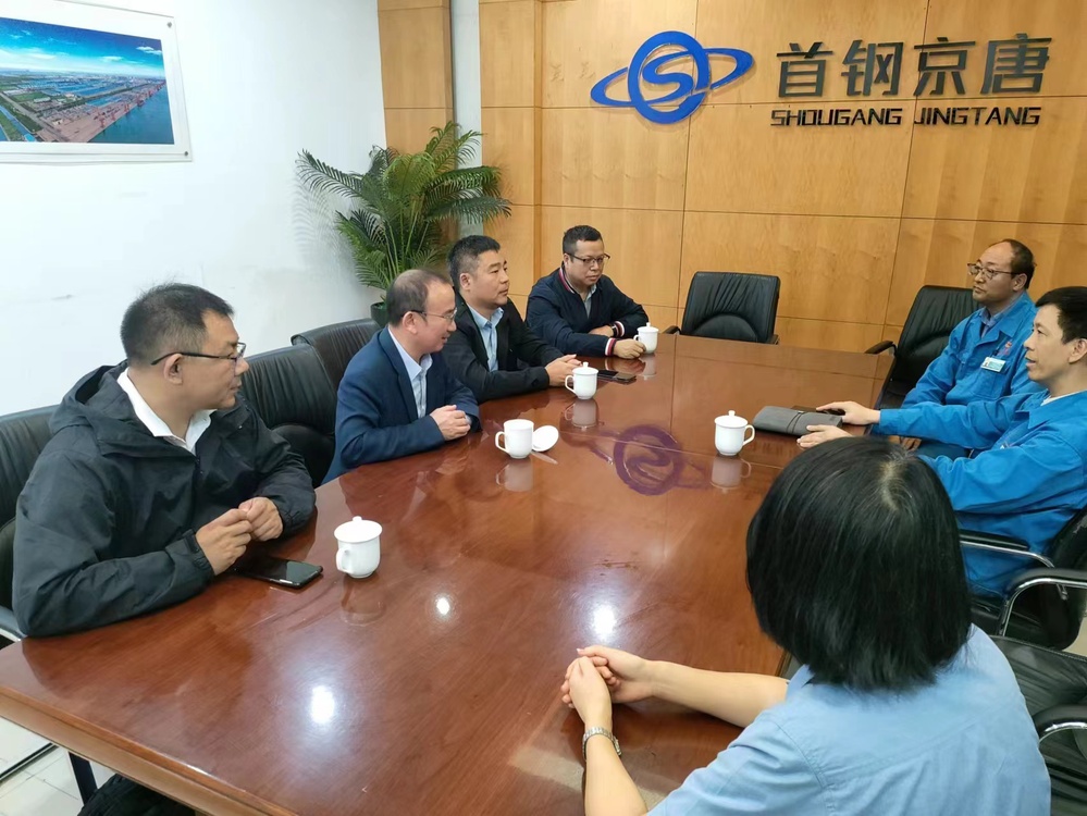为了推进高压电机智能数字运维专业技术服务平台建设,学习调研国有大型冶金行业重大设备运维和管理、科技创新与应用等方面的成功经验和先进做法,深化产教融合,聚焦电机电控领域推进电气工程学科高质量发展,11月1日,我校电气学院党委书记陈国初带队一行4人到首钢京唐钢铁联合有限责任公司走访调研。我校科技处副处长文传博、电气学院副院长冯肖亮、电机未来技术研究中心主任赵爱明一同走访调研。首钢京唐钢铁联合有限责任公司总经理助理张扬,设备部党委书记高洪斌、设备部部长吕剑、副部长杜维彬、副部长陈伟刚、高级主任师杜国兴、办公室主任吴冰冰等热情接待了我校调研组。