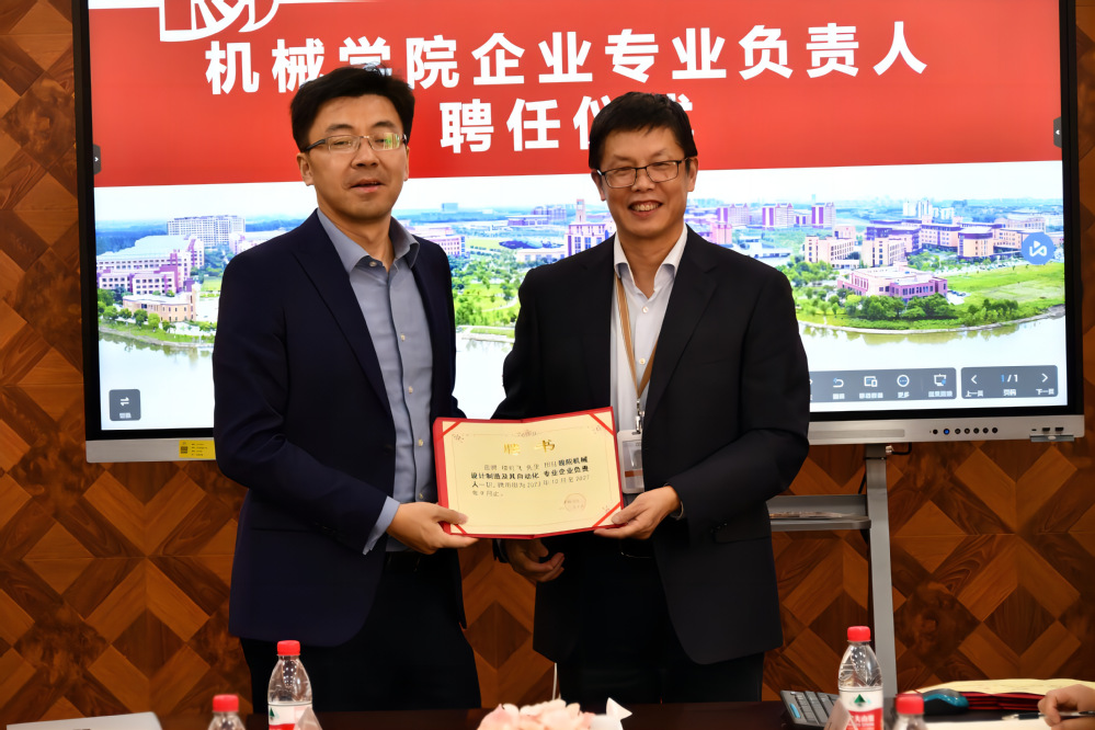 为探索产教深度融合模式,推动生产过程与教学过程相对接,提升人才培养质量。11月7日,机械学院在机械楼308会议室举行机械学院企业专业负责人聘任仪式。学院院长刘军院长、党总支书记刘俊书记等中层院领导、各院内专业负责人、各系主任以及各企业专业负责人出席会议。会议由学院赵爽副院长主持。首先刘军院长致辞,热烈欢迎各位专家的到来,对到场的企业专业负责人表示感谢,并且强调人才培养离不开企业支持,只有加强人才培养方案与企业需求的联系,优化专业课程体系才能夯实“三双四共五对接”的协同育人模式。