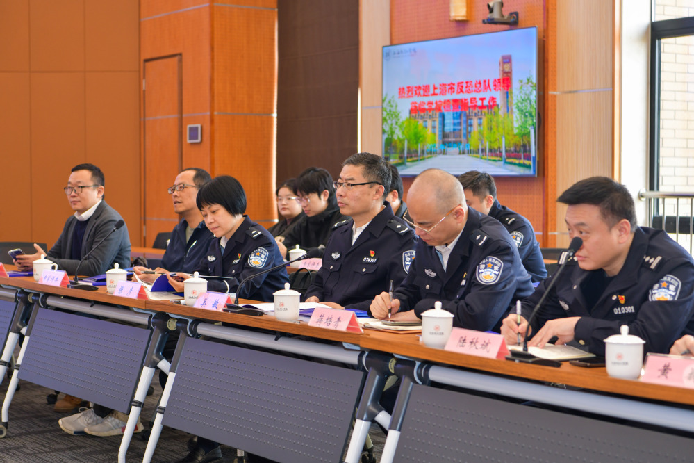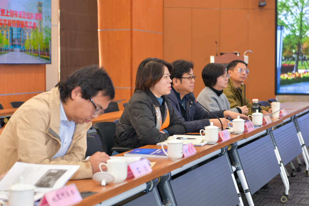 12月6日上午,上海市反恐总队副总队长奚敏率专家组一行20余人莅临学校检查指导工作。检查组一行先在行政楼330会议室听取学校关于校园反恐工作的情况汇报。校党委副书记、副院长李晓军参加会议,保卫处、党委宣传部、学工部、国际合作与交流处等相关职能部门负责人参加会议。