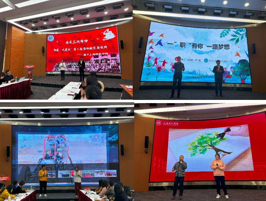 在“理论学识在强化”篇章,电子信息学院副书记袁亮、外国语学院副书记甄一捷、商学院闵行校区学工办主任顾金良、材料学院学工办主任赵璞四位老师分别就红色文化育人、党团组织育人、科研育人、网络思政育人进行分享交流,持续推动“三全育人”理念不断走深走实。