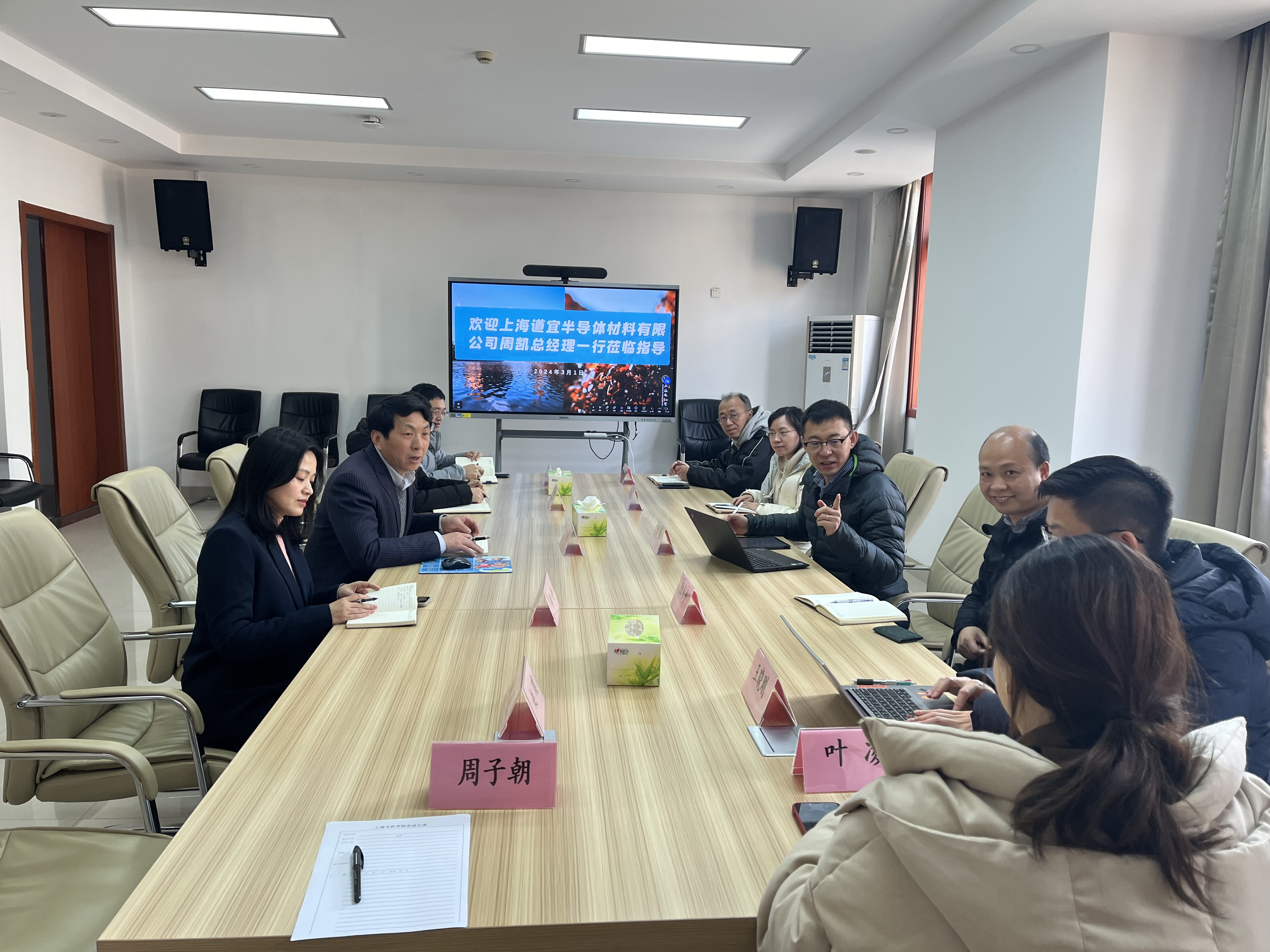 3月1日,上海道宜半导体材料有限公司周凯总经理一行6人来访材料学院。材料学院院长李荣斌对来访一行表示热烈欢迎并主持会议。