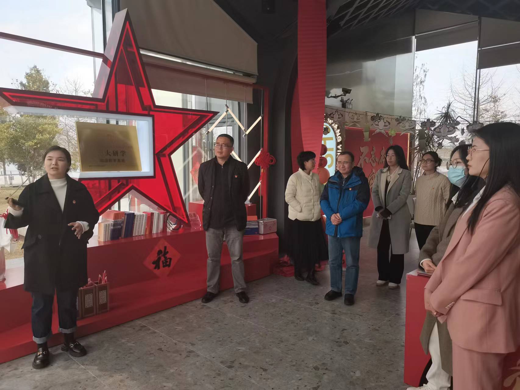 3月7日,电气学院党委书记陈国初、党委副书记卿海龙带队赴首个“一大研学”教学基地——“滴水•湖光”党群服务站参观学习,电气学院党支部书记、辅导员、专职组织员参加。在临港管委会办公室邱晓慧和服务站刘骏的带领下,通过聆听讲解了解红色IP“一大文创”等品牌,理解中共一大纪念馆所属品牌“一咖啡”所蕴含的革命故事,沉浸式体验“XR元宇宙场景”和“IP数字人”等前沿科技。