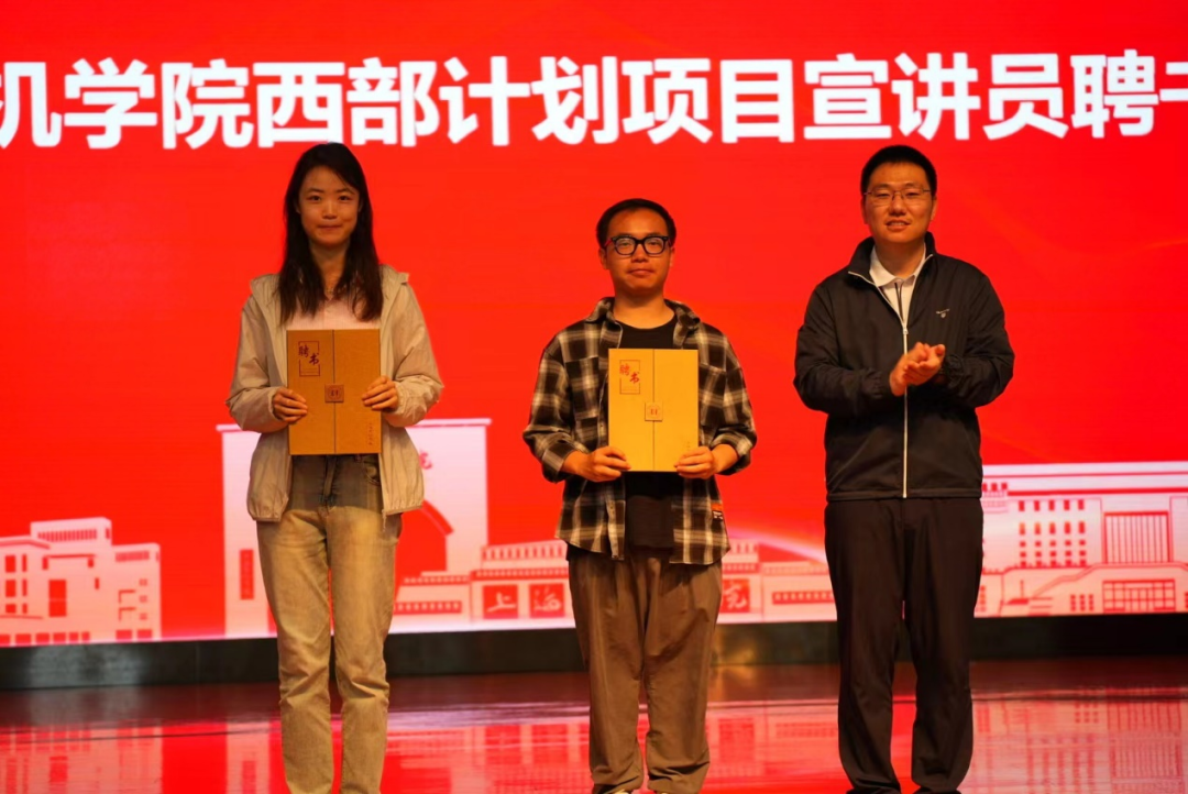 宣讲会上,校团委挂职副书记杨鹏飞围绕西部计划招募工作安排、政策支持和资金保障等作了总体介绍,鼓励广大青年深入了解西部计划、加入西部计划,助力西部建设和发展,并为学校大学生志愿服务西部计划宣讲员、西部计划校友代表田佳乐和周国军颁发聘书。