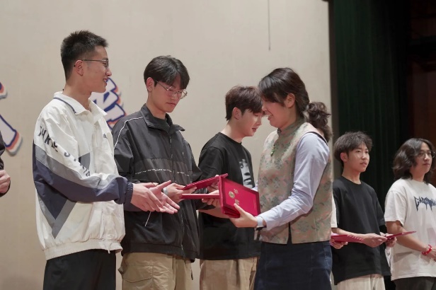 为表彰2023-2024学年辛勤工作的所有团学干部,赵静老师和桑子轶老师为他们颁发聘书。一张张聘书不仅是工作证明,更是对他们一年来无私奉献、勇于担当的最高肯定。期待他们在未来的道路上继续发光发热,引领更多的青年学子,共同书写更加辉煌的篇章!