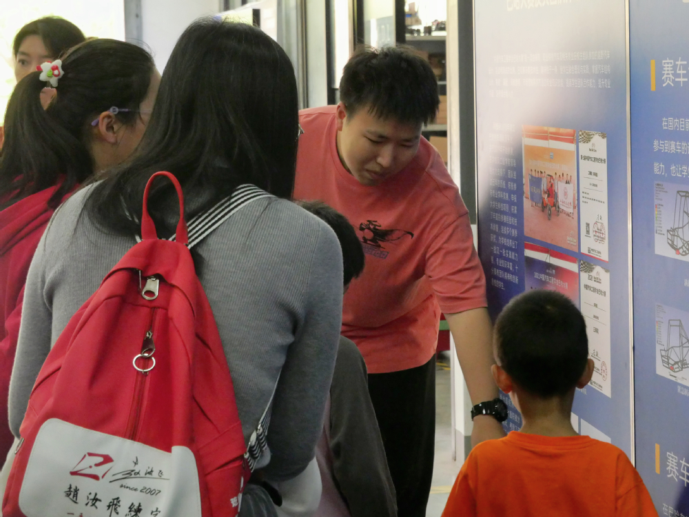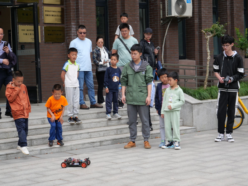 在机械学院楼前,严屹宏老师与W.D.I智能车协会成员从外形、原理及成果等方面为大家讲解智能小车,引起了青少年及家长的浓厚兴趣,同时为他们实际演示智能小车,让科创知识变得生动有趣。