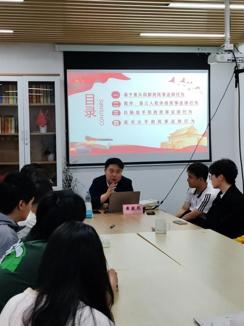 今年5月,是市委宣传部、市委依法治市办、市法宣办共同主办的第二届上海法治文化节主题月,同时也是第四个全国“民法典宣传月”。为贯彻落实全市相应部署,5月15日,党政办法务综合科联合电子信息学院,在临港校区17宿德信书院开展了“可撤销民事法律行为的实践解析”法治文化节系列宣传专题讲座。讲座由电子信息学院辅导员黄骏彪老师主讲。