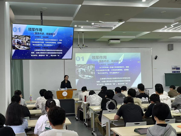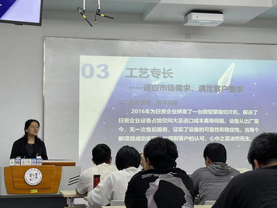 李红以“怀匠心,践匠行,做匠人”为题,向大家分享了30多年来在装备制造行业的成长与奋斗故事。作为一名土生土长的芦潮港人,从一开始的青涩懵懂,先后在车间一线、设备部、协作部、技术部等部门工作,在磨砺中逐渐成长、独当一面,成为技术部门负责人,她把最美的青春年华献给了车间和机床事业。李红至今热情不减、不断自我加压、勇于创新,率领公司技术团队,与中船重工集团704研究所合作,研发并生产出国内空白的首台智能快速扭矩校准装置,2020年公司又为国家计量院研发制造国家级标准机并填补亚洲空白;曾获“浦东新区工程机械协会创新精英”及“浦东新区创新英才”称号,同时获发明专利2项,实用新型专利10项。她以一名普通技术人员的成长经历,教育和激励广大学子要敢于刻苦钻研、拼尽全力、创新永远在路上。随后,她从谱港机床的技术迭代中讲述了自己理解、诠释、践行的“工匠精神”:“不管在哪个行业,每一步都要脚踏实地去做。碰到问题,则要不断地创新思路,去解决它攻克它。”