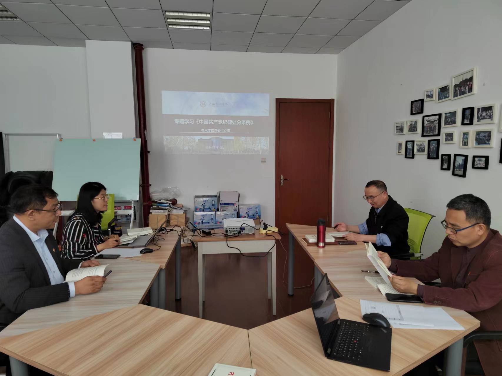 电气学院党委中心组(扩大)认真做好党纪学习教育读书班工作,深入学习《中国共产党纪律处分条例》(以下简称《条例》),深刻认识开展党纪学习教育的深刻意义,示范带动学院党纪学习教育走深走实。
