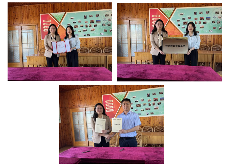 张静向王黎娜颁发了材料学院“思政育人导师”聘书,举行了“劳动教育实践基地”的授牌仪式。孔祥昆和王黎娜共同签署了上海电机学院材料学院与上海红刚青扁豆生产专业合作社合作共建框架协议。