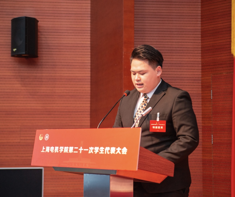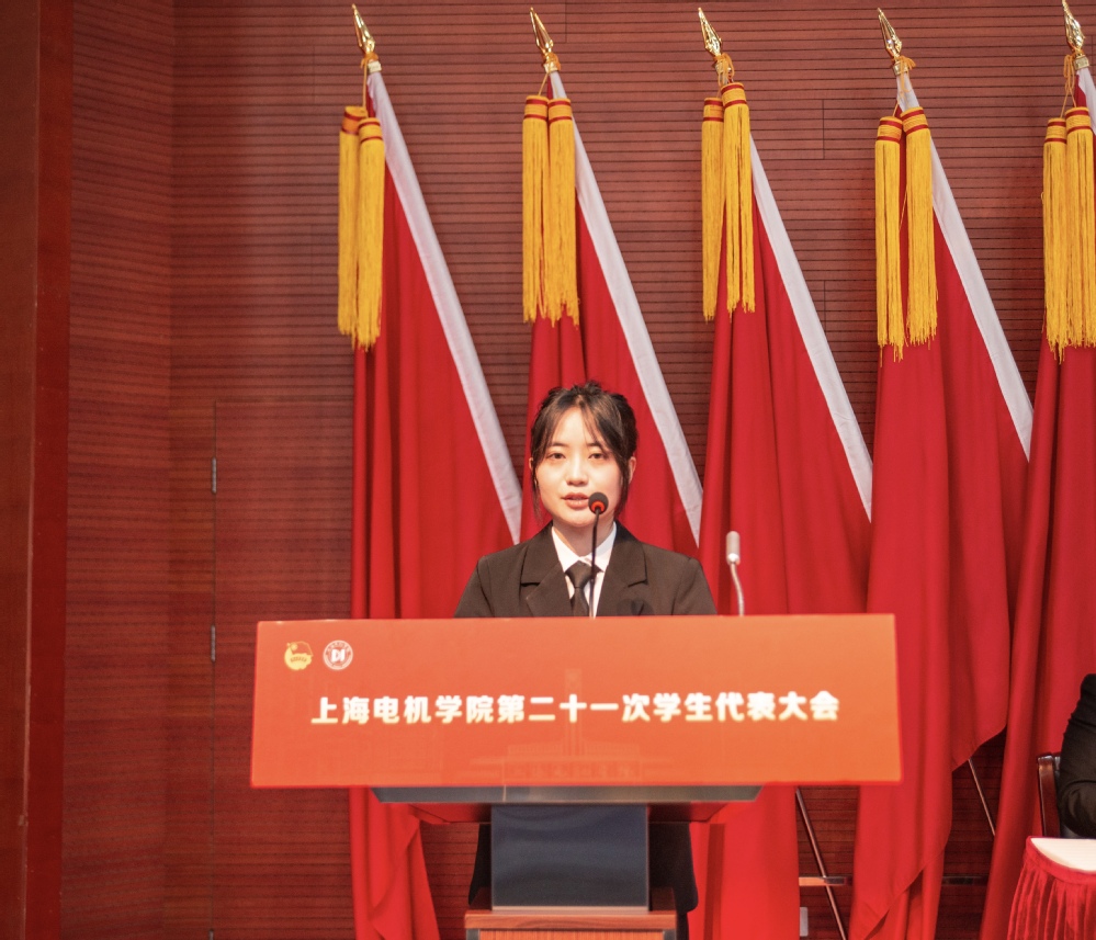 上海电机学院第二十届学生会主席团成员杨陈斌、田锦园分别汇报了《上海电机学院第二十届学生会工作报告》《上海电机学院第二十一次学生代表大会提案工作报告》。