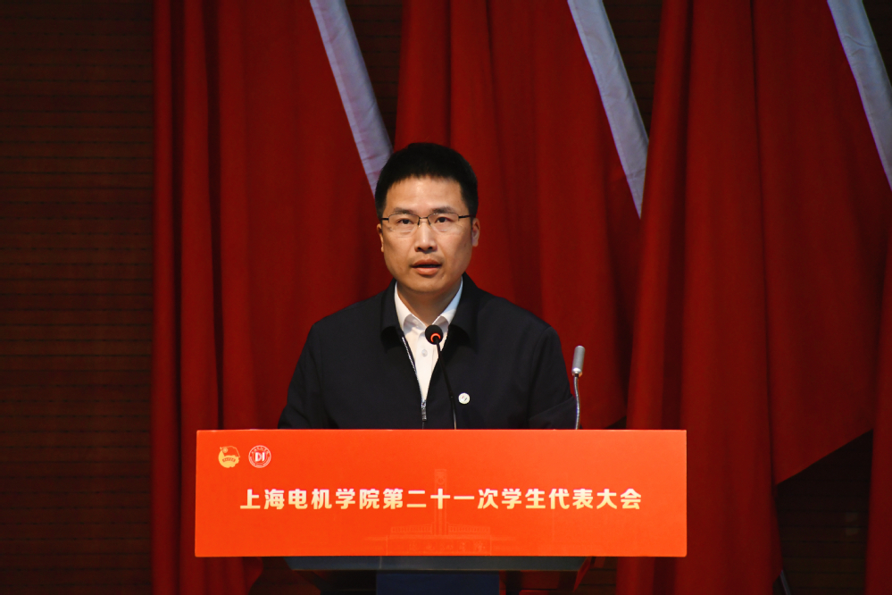 为推动产教融合高质量发展、建设全国示范应用技术大学贡献青春力量,以习近平新时代中国特色社会主义思想为指导,在党的二十大精神指引下,5月31日,上海电机学院第二十一次学生代表大会在临港校区图书馆报告厅隆重举行。校党委副书记朱洪春、上海市学生联合会驻会主席李欢峰、校党委组织员赵红霞、校团委书记张珂以及来自兄弟院校学生会代表及134名大会代表出席大会。