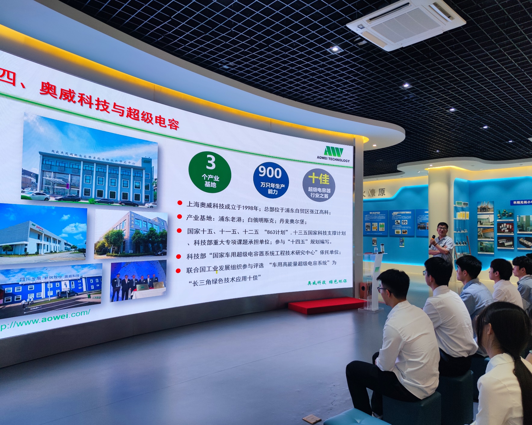 在严嵘同志的引导下,机械学院一行参观了奥威科技的展览馆。奥威科技作为超级电容器领域的领军企业,其先进的技术和产品让大家感受到了科技创新的力量和企业的蓬勃发展。