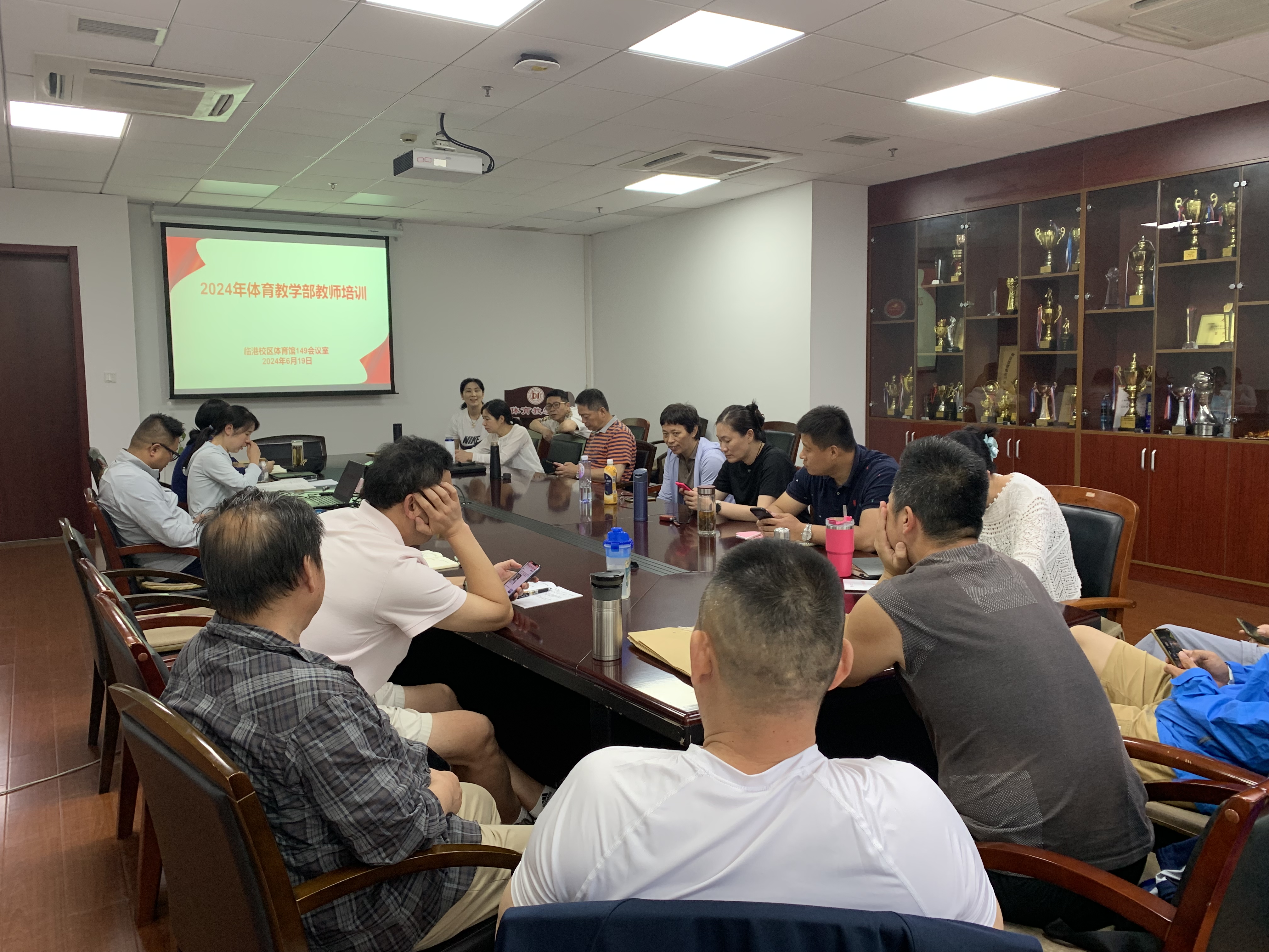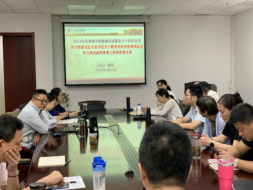 体育教学部陈萱副主任进行了《学习贯彻习近平总书记关于教育和体育的重要论述,努力推动高校体育工作高质量发展》的讲座。他先传达了刚在北京大学举办的2024年全国高等学校体育部主任培训班主要精神,随后结合我校和体育部实际,就如何推动我校体育工作和体育教学部发展,从体育工作现状与挑战、课程体系建设与优化、师资队伍培养与提升、场地设施规划建设与利用、校园体育文化活动丰富多样、外部资源整合与协同发展等六个方面进行了阐述。培训中,陈主任还就体育教学部“十四五”规划的后两年和未来展望,和老师们一起共勉和激励。下午的培训还安排全体老师集中观看影片《扫黑:决不放弃》。