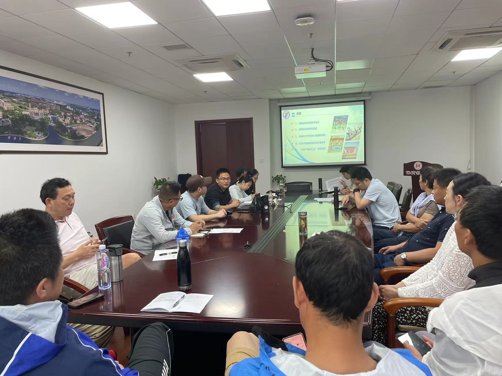6月19日,体育教学部组织全体教师,开展了上半年教师业务培训。培训为期一天,集中培训既有理论学习内容,又有业务专题和实践环节。上午,特别邀请到上海市跳绳协会秘书长、世界跳绳联盟认证国际级裁判、国家级裁判徐腾老师现场讲授“高校跳绳运动推广”讲座。徐老师用他在体育社会组织、跳绳行业标准等丰富实践经验和专业视角,阐述了跳绳运动的起源与特点、技术组成、跳绳队大学生身心健康的影响、高校开展跳绳项目的必要条件、“学研产服务社会”培养模式六方面业务实践。