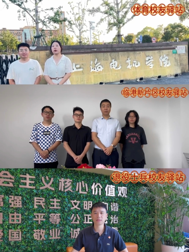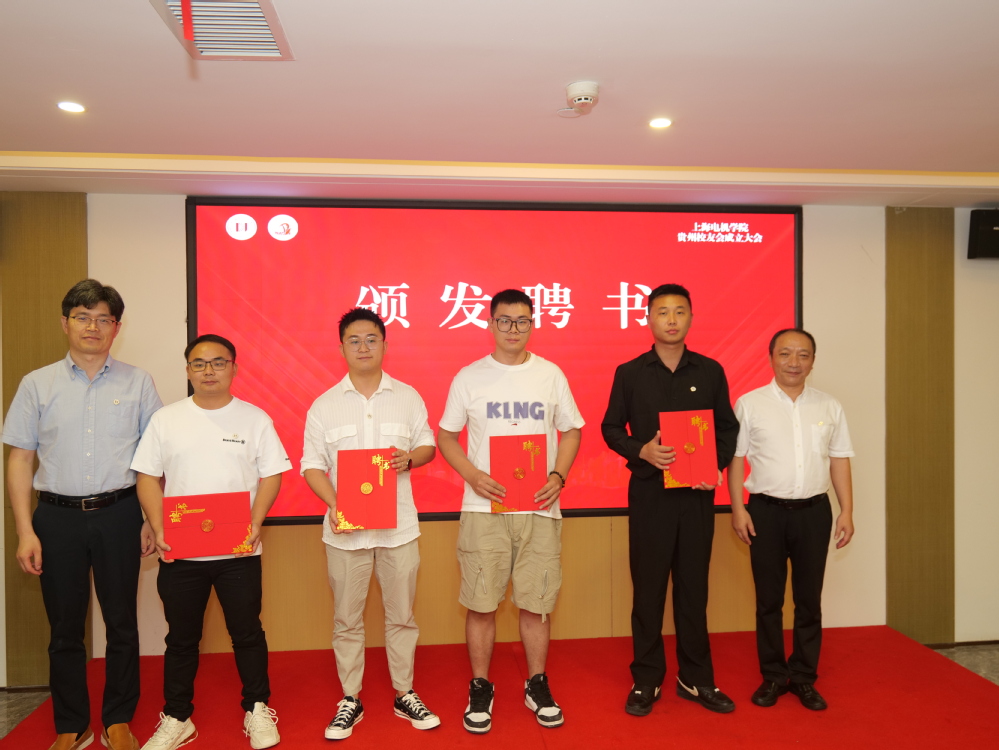 电气学院社会实践团8人在陈国初书记的带领下来到成立大会现场祝贺贵州校友会的成立。机械学院党政领导、临港新片区校友驿站、体育校友驿站,退役士兵校友驿站备案校友组织也纷纷发来祝贺视频。