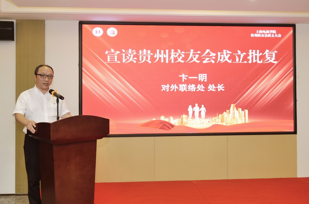 贵州校友会筹备组成员谢燕代表筹备组向大会作了筹备工作报告。紧接着,校友会办公室卞一明主任宣读了《关于同意上海电机学院贵州校友会成立的批复》。