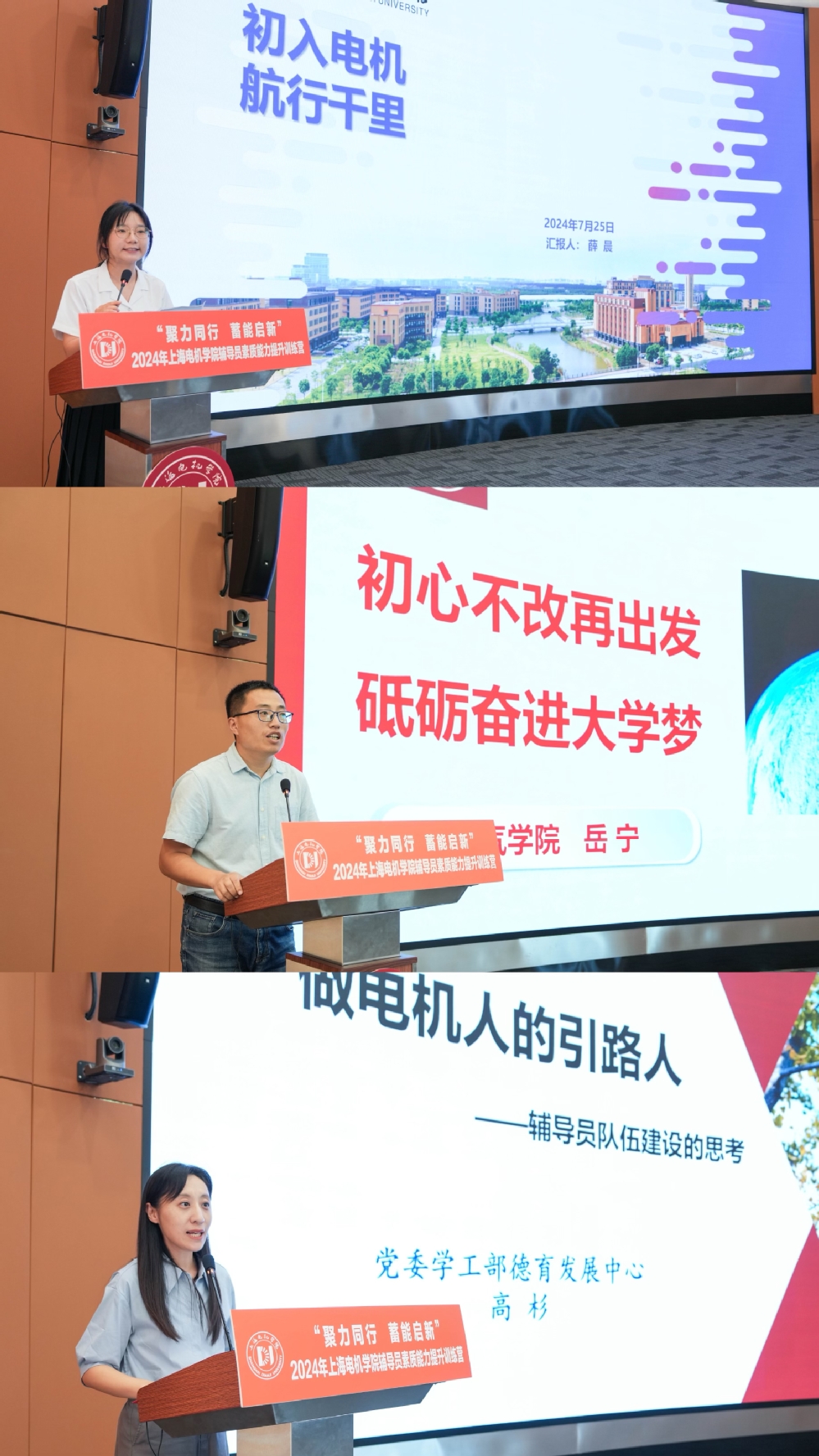 材料学院新入职辅导员薛晨、电气学院资深辅导员岳宁、党委学工部德育发展中心高杉三位学工人代表依次发言,从入职感悟、初心使命、队伍建设等不同角度进行了交流分享。