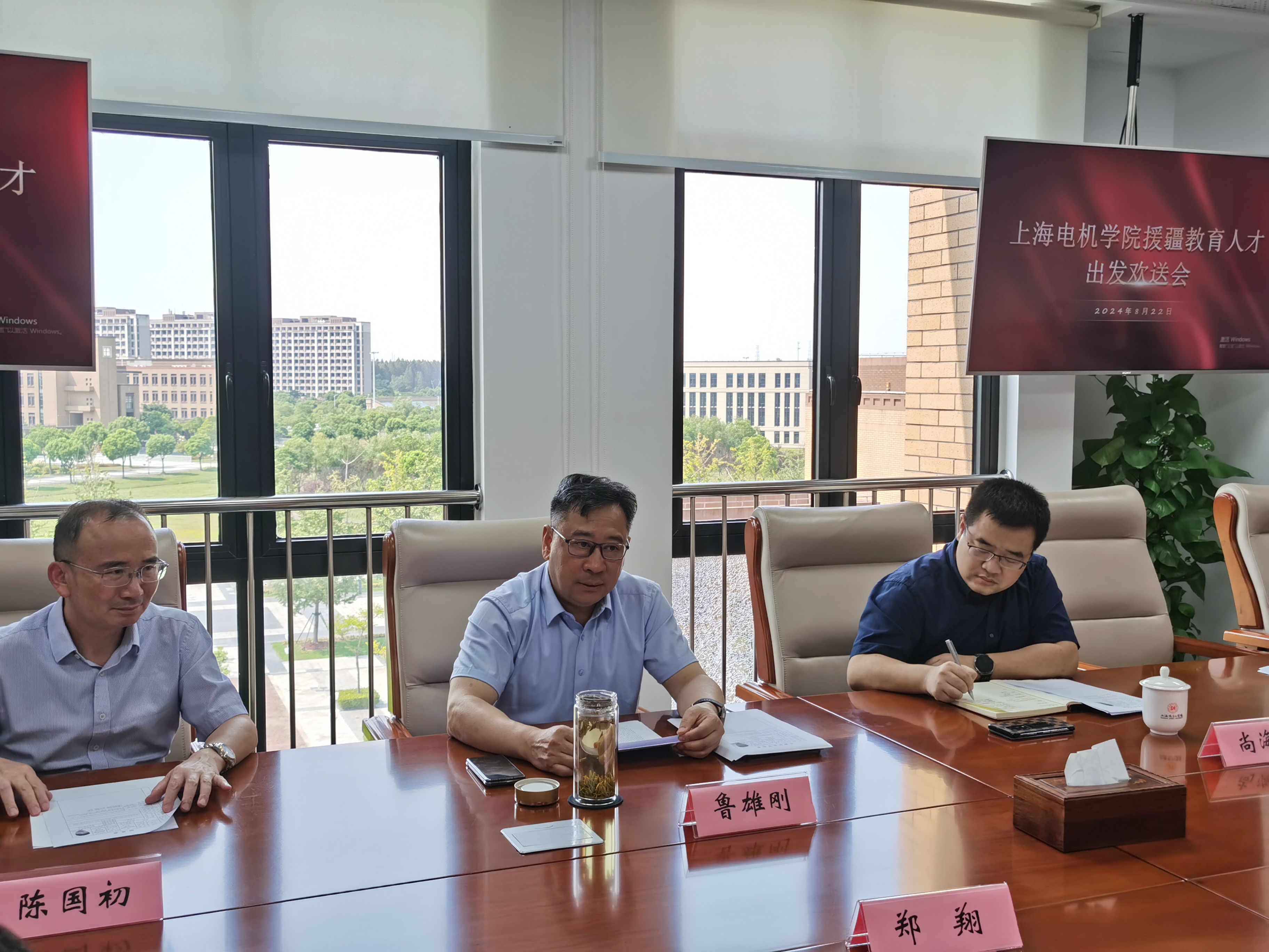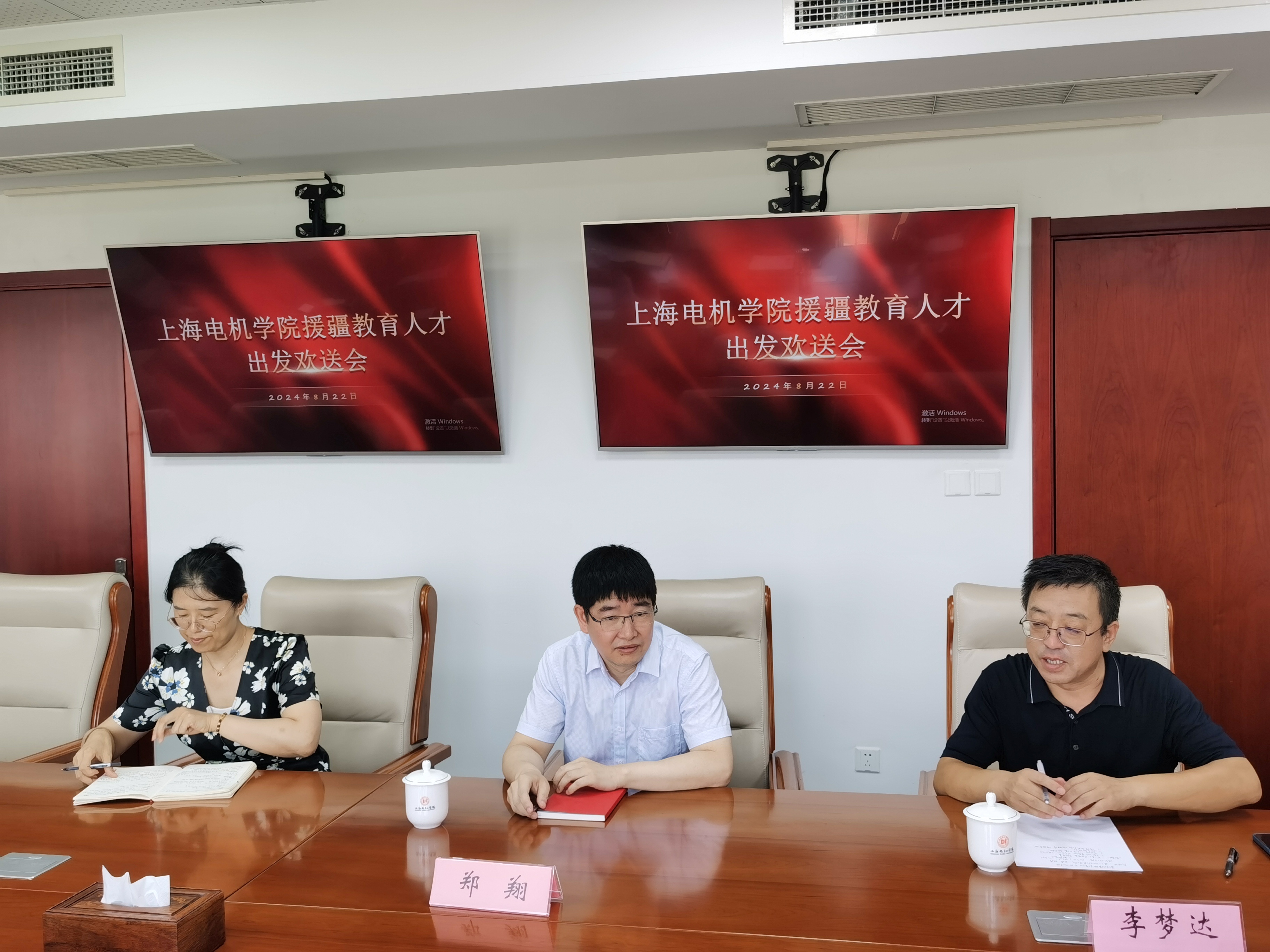 2024年8月22日下午,学校在临港校区行政楼520会议室举行援疆教师郑翔老师的欢送会,党委书记鲁雄刚出席欢送会,党委组织部、电气学院代表同志参加欢送会。