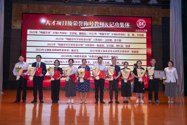9月10日是我国第40个教师节,今年教师节主题是“大力弘扬教育家精神,加快建设教育强国”。为集中展示新时代教师队伍全面贯彻党的教育方针所取得的新进展新成就,集中展现我校教师自强不息,追求卓越的精神风貌,持续营造尊师重教的浓厚氛围,9月10日下午,学校在临港校区小剧场举行庆祝第四十个教师节暨表彰大会。校领导出席会议,中层干部、获奖教师、从教满三十周年教师、新进教师以及各二级学院教师代表参加会议。