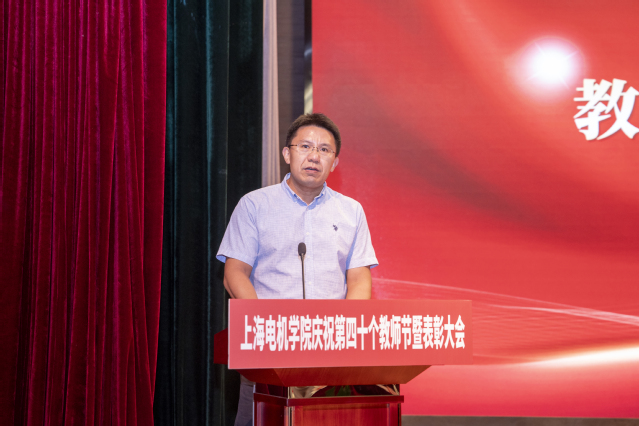 党委书记鲁雄刚在讲话中首先向长期以来辛勤耕耘在教学、科研、管理和服务岗位上的全体教职工致以最诚挚的节日问候,向获得表彰的各位教师表示崇高的敬意,向新加入电机大家庭的新教师表示热烈的欢迎。面对新时代赋予学校事业发展的新使命,他提出了三点希望:一是牢记教师育人初心,共担推动高等教育发展使命。要大力弘扬教育家精神,加快建设教育强国,以更加昂扬的斗志、更加务实的作风、更加创新的举措,推动学校各项事业再上新台阶。二是锚定学校发展目标,深度参与学校改革发展。要锚定建成具有航空航天特色的全国示范应用技术大学的宏伟目标,以高质量党建引领学校高质量发展。三是强化教师队伍建设,助力教师成长发展。希望全校教师加强师德师风建设,做学生健康成长的指导者和引路人;立足本职岗位,发挥专业优势,勇于担当作为,服务学校发展大局;保持终身学习的态度,不断更新知识结构,提升专业素养,努力成为新时代的高素质专业化教师。