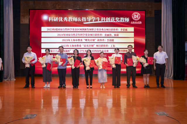 教育兴则国家兴,教育强则国家强。建设教育强国,强教必先强师!一年来,学校广大教师自强不息,追求卓越,在各自的岗位上取得了优异的成绩,会上,对课程获奖、教学竞赛获奖、教学优秀奖教师、国家自然科学基金项目、各类人才计划、宝钢优秀教师奖获得者和从教三十周年教师进行了表彰。党委副书记李晓军宣读了表彰名单,校领导张川、王志恒、刘彬、李晓军分别为获奖教师颁发证书和鲜花。