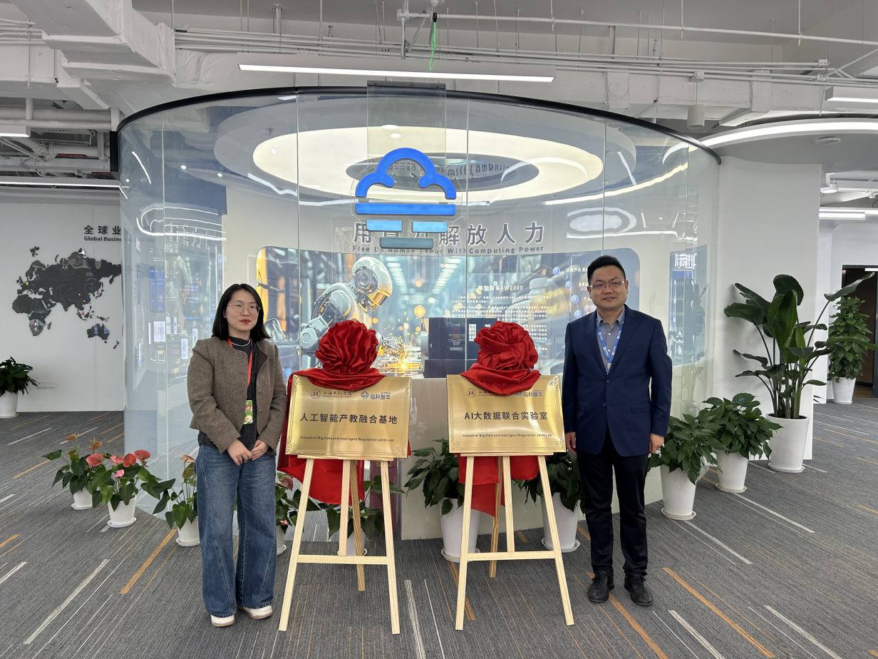 在前期调研合作的基础上,校企双方已经签订了“产学研合作协议”和“联合培养卓越工程师协议”,并达成了校企共建“人工智能产教融合基地”“AI大数据联合实验室”的共识,这次由陈志敏副院长和王素军总裁共同为联合实验室和产教融合基地揭牌,为后续双方深度合作打下了良好的基础。