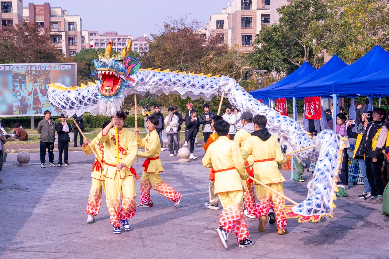 活动现场,高职学院和预科部带来了维吾尔族舞蹈《葡萄架下的篝火》、原创歌曲和《鲤鱼跳龙门》舞龙展示,来自蒙古族、藏族、维吾尔族、彝族、苗族、达斡尔族、壮族、朝鲜族、哈萨克族、回族、满族、布依族等少数民族的学生身着特色民族服饰,载歌载舞,一曲曲悠扬的民族歌舞,不仅展现了各民族独特的艺术魅力,更传递出大家对美好生活的向往和对民族团结的深情厚谊。