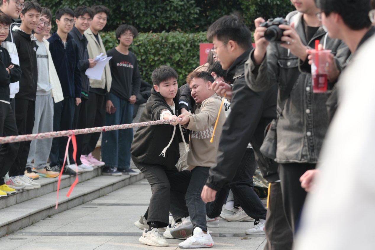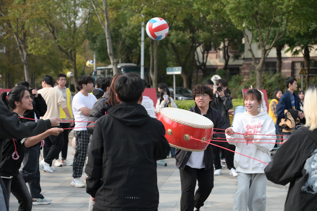 活动中,充满少数民族特色的趣味运动项目轮番上演,将现场气氛推向高潮。既有考验团队协作能力的“竹竿舞”“彩带舞”,让大家在欢快的节奏中感受民族舞蹈的魅力;也有展现个人技巧的“投壶”“旋转空竹”,让大家领略到古老技艺的精准与力量;更有增强民族凝聚力的“拔河”“鼓动人心”,不同民族的同学们携手并肩,用汗水与笑声诠释了五十六个民族是一家的深刻内涵。