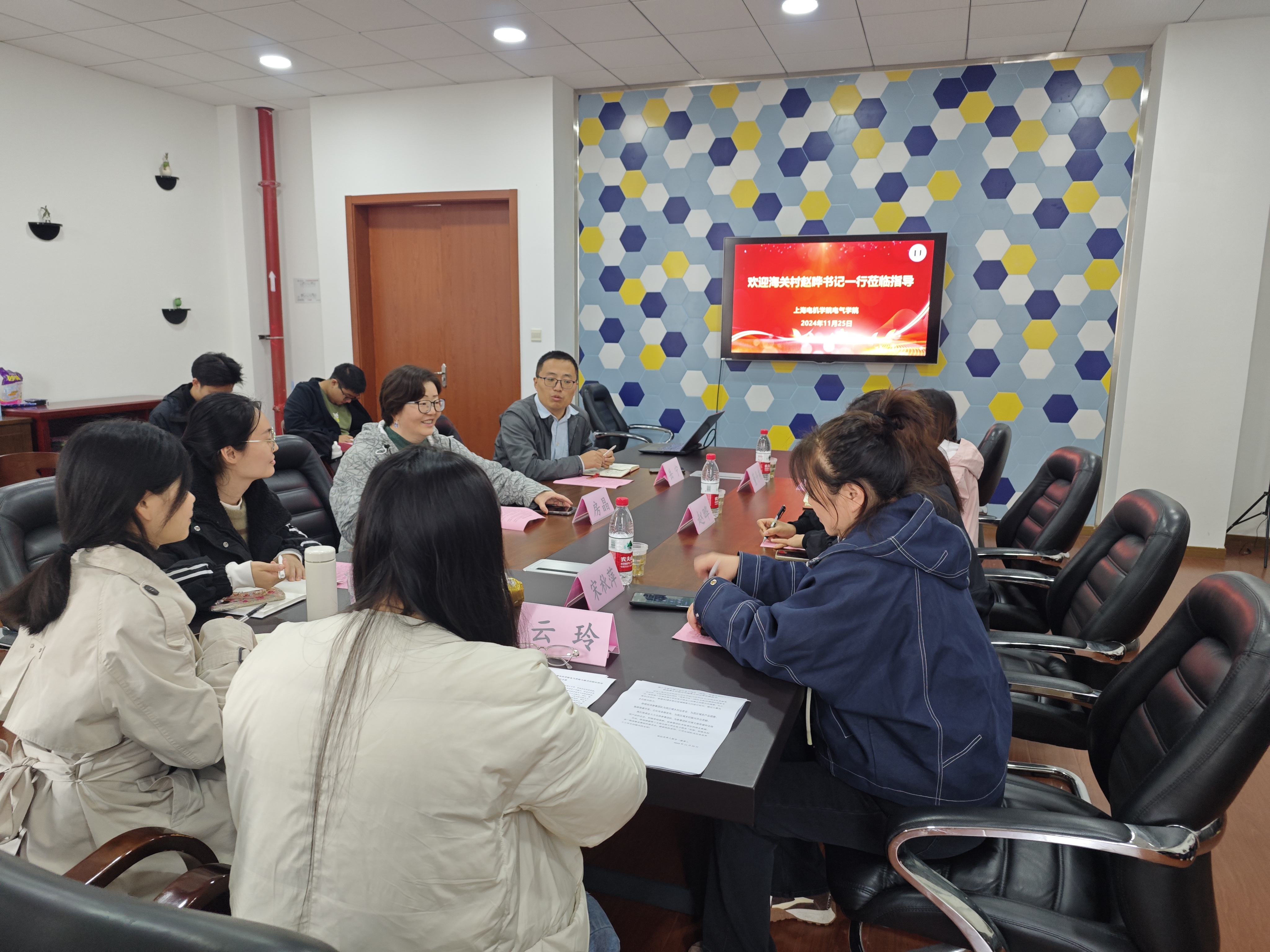 房晶对海关村的热情接待表示诚挚感谢,介绍了电气学院的发展历史、专业设置、人才培养模式等,欢迎海关村来校调研,希望双方在党建共促、校村融合、志愿服务等方面开展尝试与探索,让青年学子积极投身乡村振兴,拓宽学生成长成才的平台。