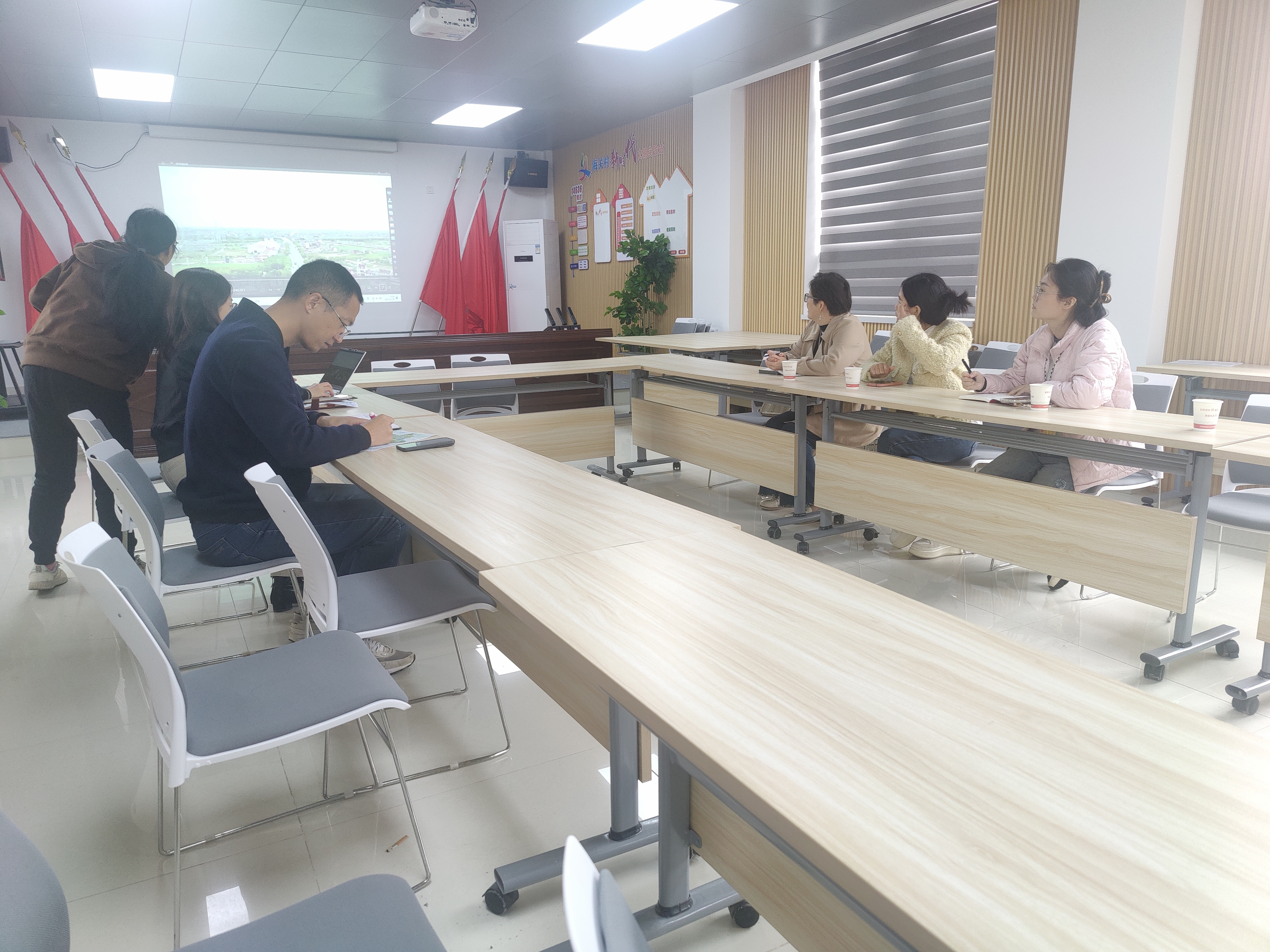 11月20日,上海电机学院电气学院党委副书记房晶、学生党支部书记一行4人赴泥城镇海关村调研。海关村驻村指导员赵晔、党总支书记龚良对电气学院调研人员表示热烈欢迎,全面介绍了海关村的情况。赵晔指出,海关村已经创成上海市美丽乡村示范村,目前正奋力向创建乡村振兴示范村的目标迈进,根据“水岸乡居 青绿海关”的创建主题,海关村积极践行“产业兴旺、生态宜居、乡风文明、治理有效、生活富裕”二十字方针,并创新性地探索实施了村民积分制管理模式。