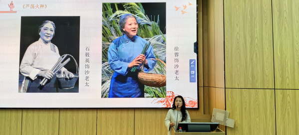 上海是中国共产党的诞生地,红色基因深深流淌在城市血脉中。沪剧以海纳百川的胸怀、勇于创新的气魄创作了一批讴歌党、讴歌祖国、讴歌人民、讴歌英雄的精品力作,沪剧历史上多部里程碑式的作品都与红色题材息息相关。在讲座中,徐蓉老师以沪剧为载体,带领师生们领略了沪剧舞台上的红色经典作品,如《星星之火》《红灯记》《黄浦怒潮》《芦荡火种》《霓虹灯下的哨兵》等。她用生动的表演和深入浅出的讲解,让大家感受到了沪剧的独特魅力和红色文化的深厚内涵,并现场演唱了《罗汉钱》《红灯记》《江姐》中的著名唱段。通过欣赏沪剧经典片段,师生们仿佛穿越时空,回到了那个波澜壮阔的革命年代,深刻体会到了先辈们的奋斗精神和爱国情怀。
