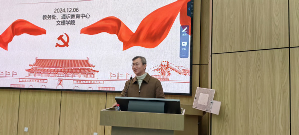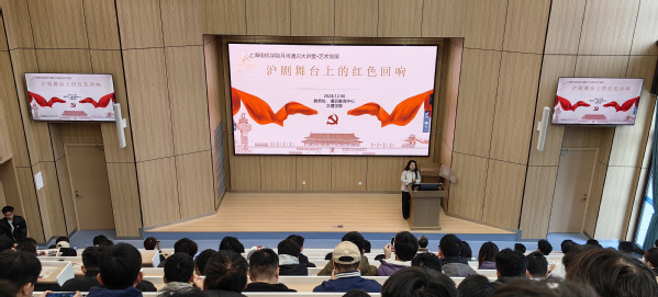 11 月22 日13:30,由我校教务处、通识教育中心、文理学院直属党支部共同主办的本年度最后一场月河通识大讲堂《繁花申曲,戏润电机——沪剧舞台上的红色回响》在临港校区E116成功举办。本次讲座由我校客座教授、上海沪剧院国家一级演员徐蓉主讲。文理学院副院长、通识教育中心副主任吉文斌主持讲座,160余名本科学生、研究生及教师党员聆听了讲座。