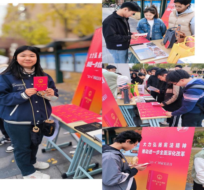 2024年12月4日是第十一个“国家宪法日”,12月1日至7日是第七个“宪法宣传周”。为深入学习贯彻党的二十届三中全会精神和习近平总书记在庆祝全国人民代表大会成立70周年大会上的重要讲话精神,弘扬宪法精神,上海电机学院提前部署、精心策划,积极组织开展多样化的宪法宣传活动,大力营造尊崇宪法、学习宪法、遵守宪法、维护宪法、运用宪法的浓厚氛围。