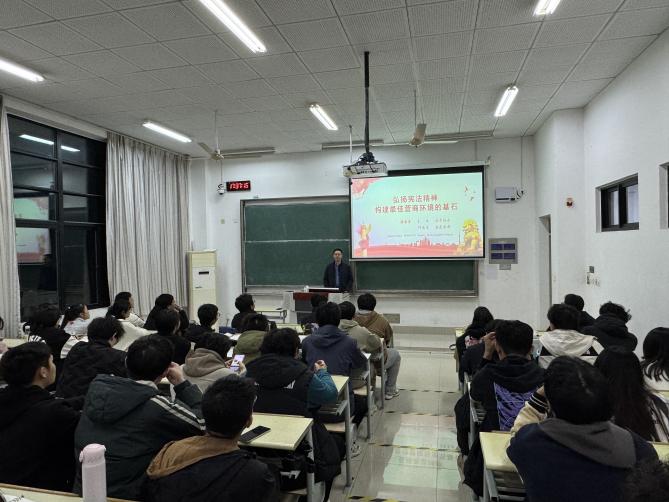 举办专家法治讲座,加强法律技能培养。邀请校内外专家开展法治讲座,有三百余名师生参加了《弘扬宪法精神,构建最佳营商环境》专题报告,以及“党的领导是我国宪法生命力的源泉”“以“例”释法,弘扬宪法精神”“弘扬宪法精神,依法维护国家安全”讲座。通过深入解读宪法精神,不仅让同学们对宪法精神有了更全面深刻的理解,也激发了他们参与法治实践的热情。