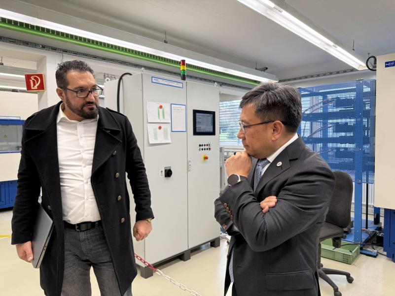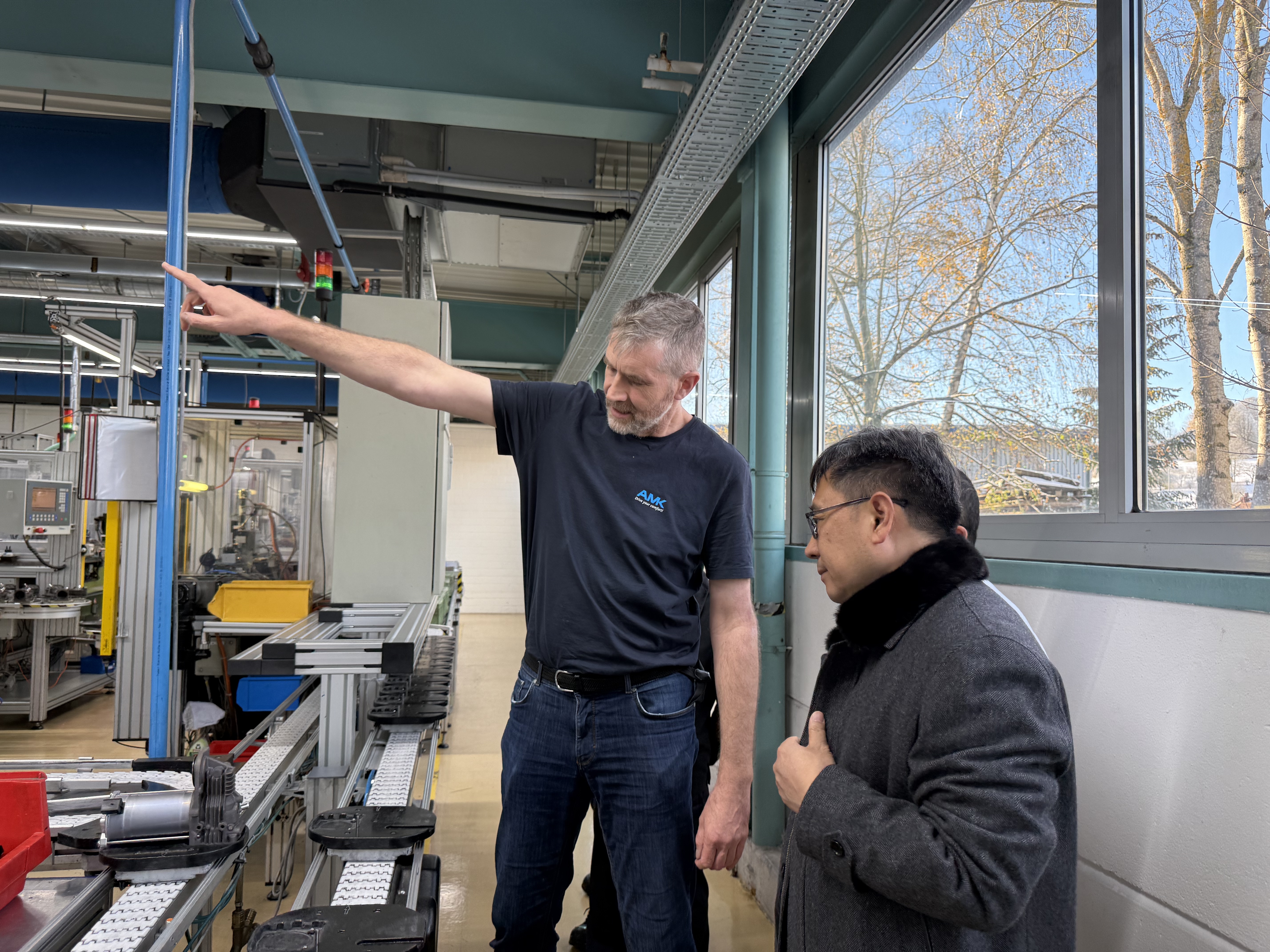 我校代表团还前往位于唐施泰滕的AMK公司工厂进行了实地考察,旨在深入了解该公司的生产运营状况及当前的人力资源需求。代表团与AMK公司的首席执行官周密及研发部与工程部相关领导进行了深入会谈,双方就学生实习项目、科研合作等产教融合领域的合作事宜进行了细致的探讨与协商,旨在共同推动教育与产业的深度融合与发展。