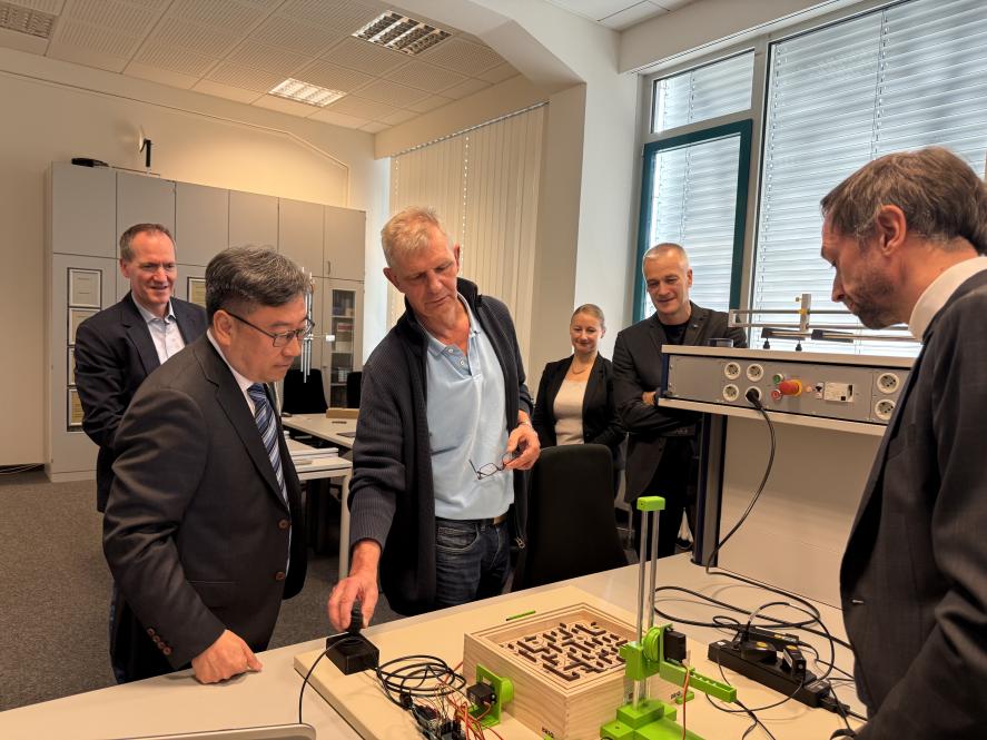 在不来梅应用技术大学,该校工程学院的教授及相关负责人热情接待了代表团。双方围绕电气、机械等专业的教学与科研情况进行了深入交流,并实地参观了电气、机械专业的实验室。在此基础上,双方探讨了本科及硕士人才培养的相关合作,就机械类、电气类本科2+2合作及硕士1+1合作项目进行了详细洽谈,最终达成合作意向。