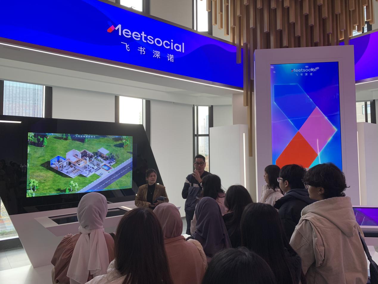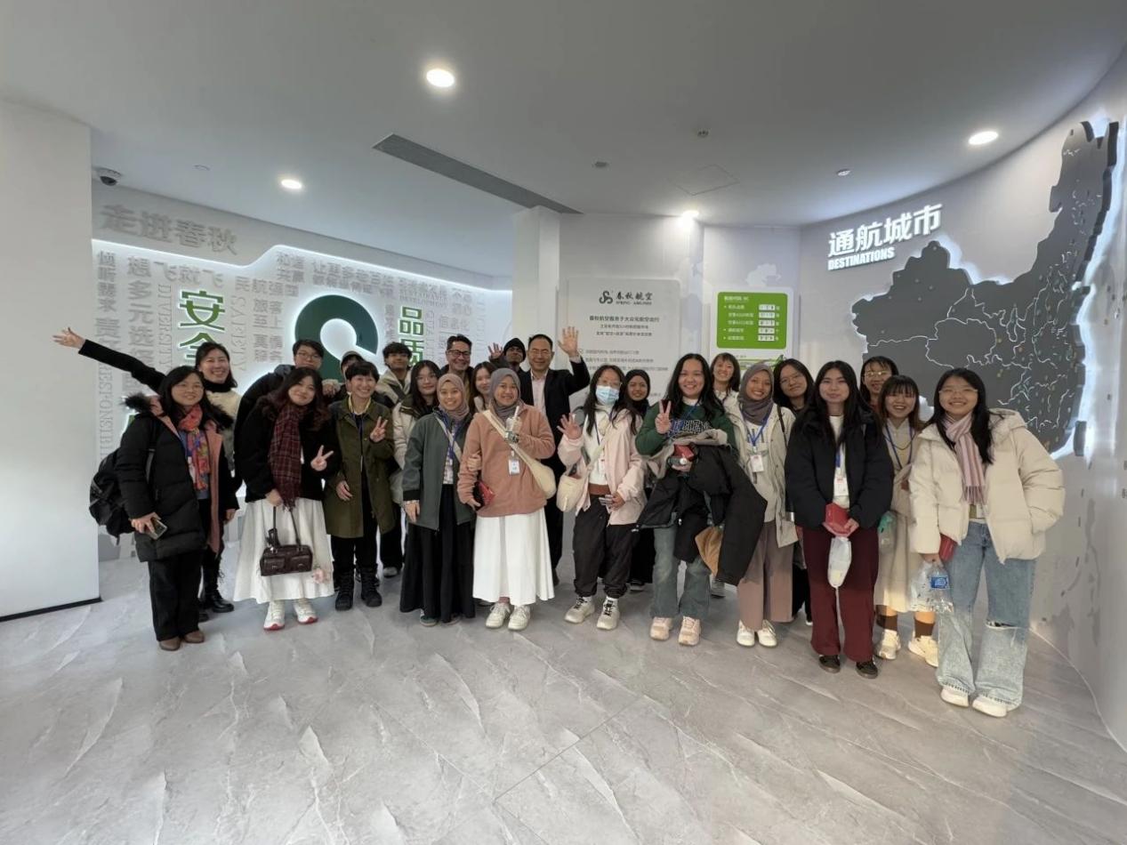 除了校园参观和课堂学习,学生团一行还前往了多家知名企业进行实地探访。在长宁区侨联党组书记、主席方静燕的带领下,学生团来到了春秋航空公司总部参观。通过实地走访和讲解了解这家国内知名航空公司的成长历程、运营模式以及在国际舞台上的活力与潜力。次日,代表团又前往飞书深诺公司进行参观,这家专注于数字营销和技术服务领域的领先企业展示了最新的行业趋势和发展动态,为学生团提供了一个近距离接触高科技企业的宝贵机会。