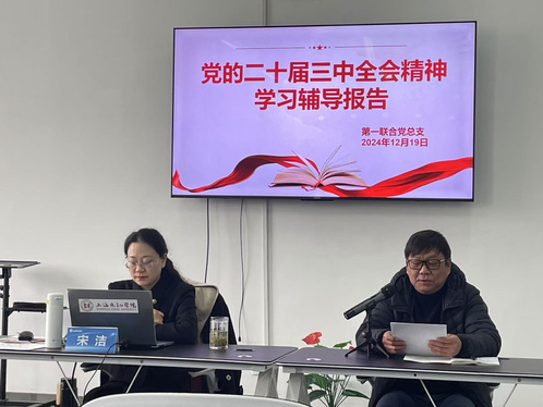 为深入学习贯彻党的二十届三中全会精神,深刻领会和把握其精髓要义,12月19日,第一联合党总支(以下简称“党总支”)邀请市教卫党委系统宣讲团成员、马克思主义学院教授宋洁做党的二十届三中全会精神学习辅导报告,党总支全体党员参加学习,党总支书记吴军民主持报告会。