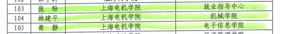 为进一步提升学校就业工作队伍水平和服务质量,总结经验、激励先进,树立典型,经校内申报、遴选、公示等评选流程,我校就业指导中心张盼、机械学院林建平、电子信息学院青静三位老师获评“2024年上海高校毕业生就业工作优秀典型”。